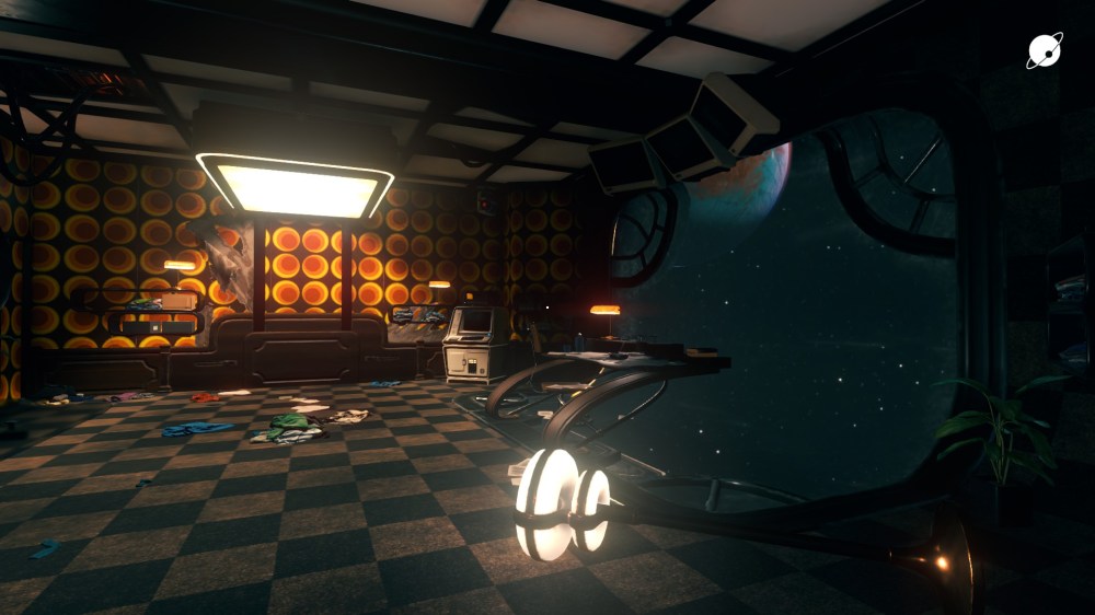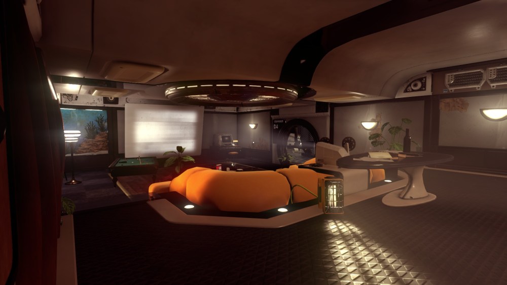 Event[0] n’est donc pas qu’un vulgaire « walking simulator », simplement délocalisé dans l’espace. Tout comme bon jeu d’exploration, un grand détail a été apporté à l’ambiance et à l’environnement dans lequel évolue le joueur. On nage ici dans des niveaux rétrofuturistes qui pourraient être tout droit sortis du cerveau de Kubrick, rendant un hommage certain à l’esthétique des années 80. Dénué d’interface hormis celle des terminaux, le joueur évolue librement dans le vaisseau à la recherche du moindre indice lui permettant d’avancer, jusqu’à une des trois fins fatidiques qui ne laisseront pas le joueur indifférent.