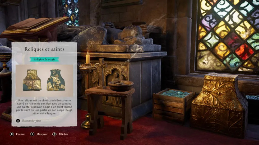 En complément des quêtes, des «cartes de savoir» pullulent sous forme de lumière vive un peu partout dans les niveaux. Les cartes dorées fourniront au joueur des faits historiques sur l’art, la culture, la justice, les sciences, de l’époque, le tout systématiquement illustré et référencé comme dans un manuel d’histoire. Les pastilles bleues quant à elles, sont ici pour fournir les Behind the Scenes, avec des anecdotes de développement, mais aussi des éclairages sur le travail réel d’un développeur de jeu vidéo sur un jeu comme Assassin’s Creed. C’était aussi l’occasion pour Maxime Durand de justifier parfois des choix historiques et de saluer le travail de son équipe.